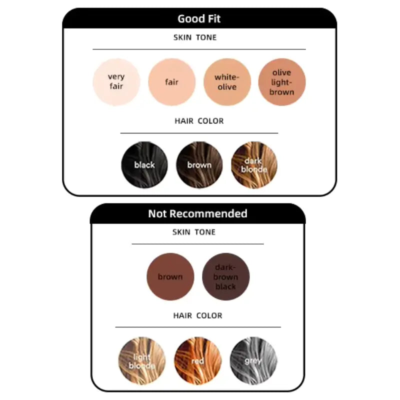 Select the hair and skin options that closely resemble your natural hair and skin colors.